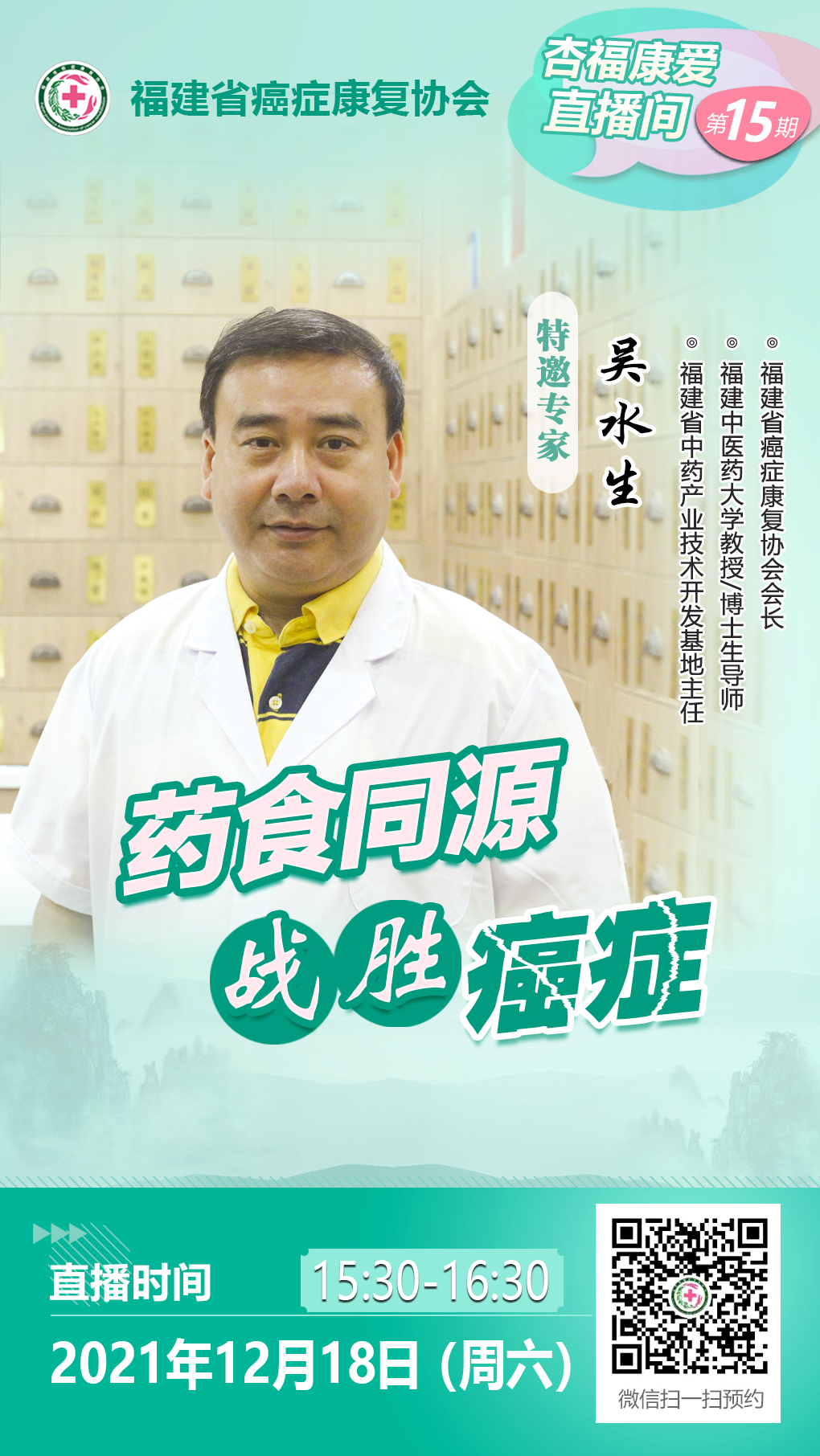 为了让癌友们规避饮食误区,合理饮食结构,吃出健康,本周六下午3:30,杏福康爱直播间特邀福建省癌症康复协会会长,福建中医药大学教授、博士生导师,福建省中药产业技术开发基地主任——吴水生博士,揭秘癌症患者的饮食“红黑榜”。